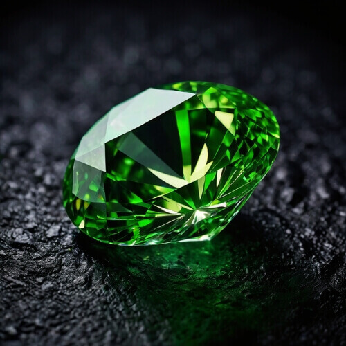 Ces diamants représentent moins de 0,1 % des diamants colorés. Les teintes intensément verdoyantes sont extrêmement rares et valorisées au-delà des diamants blancs de taille comparable. Le vert vif peut atteindre plus de 300 000 $ le carat.